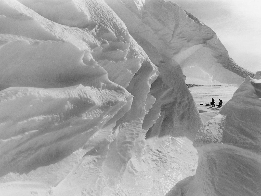 Scientist showing off an ash layer in an ice core. Source: Dargaud, CC BY-SA 4.0