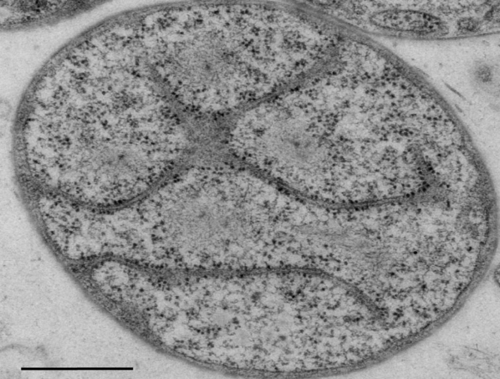 Using three different techniques, scientists at the University of Queensland broke apart, or lysed, some G. obscuriglobans cells — freezing the cells with liquid nitrogen (at a frigid -321 deg F) and grinding them up, making thin slices of the cells. These small slices are then stained and highlights the details of the structure of the cell. After lysing the cells, the different slices were viewed under a powerful electron microscope. An electron microscope captures far more detail at much higher magnitude than a traditional light microscope you may see in schools.
