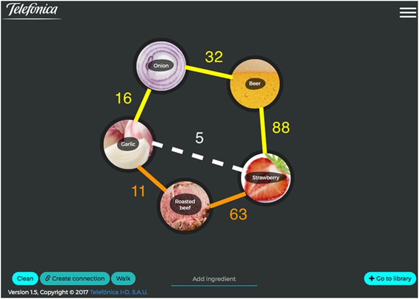 Simas’ team then built on this pairing analysis to introduce the concept of “food-bridging”. Think about it this way: choose your favorite big city and think of its dense road network. All the intersections are called nodes, and in our food network, they represent different kinds of foods (beverages can be used as well). If two foods are well paired, they can be connected by a single roadway. If they don’t, they can be bridged by going through different nodes (foods) that can be successfully paired, until you reconnect the original two together though a chain of nodes. That’s bridging. For example, strawberry and garlic have only 5 shared chemical compounds (flavors), making them not ideally suited for pairing, as you would agree. But garlic shares 16 flavors with onions, which shares 32 flavors with beer, which shares 88 flavors with strawberries! Whew! And herein lies the recipe of a garlic-strawberry sauce.
