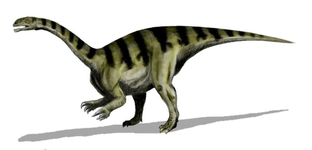 So, what are the implications of larger flocculus lobes in Saturnalia and why are they important? Bronzanti et al. propose that the reduction of the floccular lobes show modifications that occurred due to a shift towards a herbivorous diet. Saturnalia is characterized as being bipedal and having a shorter neck than its larger cousins. These character traits are more associated with a predatory or omnivorous diet, lending to the hypothesis that Saturnalia falls into those dietary habits. This hypothesis is further supported when the scientists compared the teeth of Saturnalia to those of another Triassic sauropodomorph, Plateosaurus. Plateosaurus, much like Saturnalia, was a small bipedal sauropodomorph but differed in that the ridges along the teeth, called denticles, and width of the tooth crowns were coarser and larger, respectively, than those in Saturnalia. Coarser denticles are generally indicative of grinding surfaces in dinosaurs and are used to chew plant material instead of slicing through muscle tissue. Saturnalia had teeth that were curved and had smaller denticles that favored the serrations of omnivores and carnivores. This is a far cry from the straight, coarse, and tiny teeth found in the enormous sauropods of the Late Cretaceous (65 million years ago).