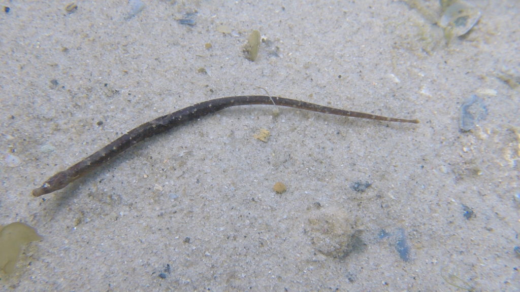 Pipefish are very difficult to find in their habitat due to their cryptic appearance. They are rather small, and resemble dead or alive seagrass blades, kelp fronds, or small sticks, and depending on water conditions it’s rather easy to spend an hour or two underwater and not find one fish.