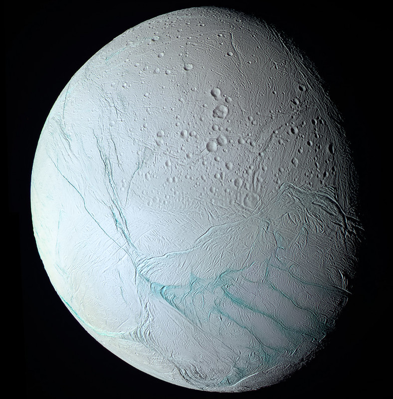 When scientists analyzed data from the CDA, they found that the plume material consists mostly of salt-rich water with small amounts of carbon dioxide, ammonia, hydrogen, and methane. The relative concentrations of each chemical varied depending on Enceladus’ position with respect to Saturn, so they proposed that the effect of Saturn’s pull on Enceladus’ crust changed the size and amounts of fractures present in its surface, ultimately affecting the plume composition.