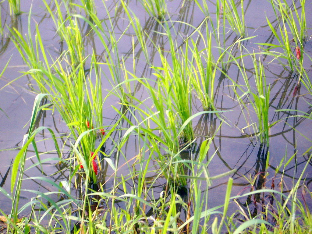 If you have ever driven by a large rice field, you likely would have seen many tall plants in a flooded paddy. There are over 160 million hectares of flooded rice paddies around the world, which is traditionally the best way to grow rice. Flooding prevents weeds from invading rice fields as their roots suffocate under water. On the other hand, rice and other wetland plants can survive in oxygen-poor (anaerobic) soils due to spongy tubes called aerenchyma that allow for the transport of oxygen from the leaves down to the roots.